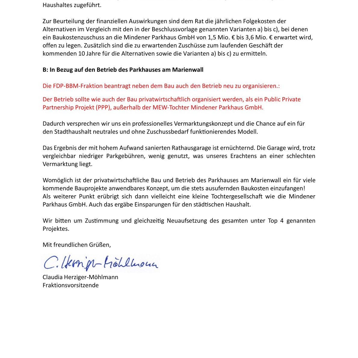 Antrag der Fraktion BBM-FDP